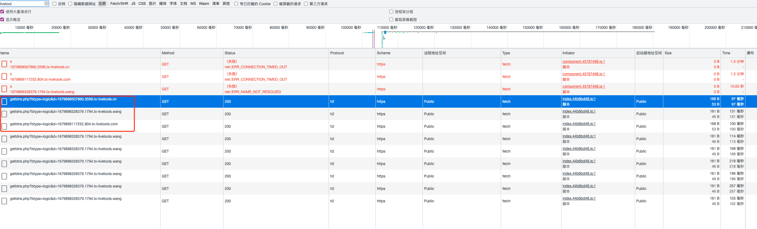 可能因为 livetools.wang 返回了 null,所以重试了很多次: